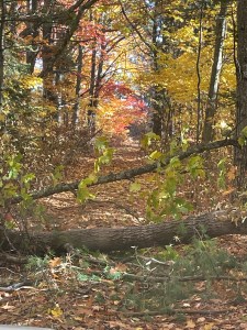 We headed out Sunday morning as planned. All packed into Scott’s new ride. Ready and excited to begin our first of many adventures in our newly unencumbered lives. Despite the off and on rain, the drive was beautiful. I’m not sure if fall colors get better with age or if we just appreciate them more each year, but this fall; they have been absolutely stunning. We pull into the drive; and what to our wondering eyes should appear, but a tree down across the drive. In a near sacrilegious move, Scott didn’t bring a chainsaw. Nothing was going to dampen our moods. We backed up and hit the road, headed to Wayne’s house in search of a chainsaw. Thankfully, he and Mary were home and we grabbed the saw and headed back; anxious to get back and unpacked before darkness hit.