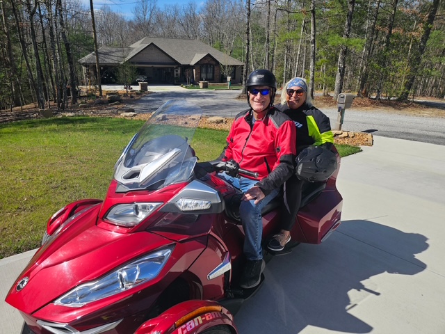 On our way to Florida, we decided — somewhat suddenly — that we needed a Can-Am Spyder. With the help of an old friend, one was located in Tennessee and paid for that on the way home from Florida. Once we get it home and gear up with matching helmets, we have plenty of ideas for adding that to our already busy retirement schedule. I’m sure some people think we’re a little crazy, but when you’ve lived through what we have, your perspective shifts. We’ll let the financial advisor decide if it was a mistake.