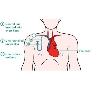 Illustration of a Hickman Catheter used for magnesium IV after BMT transplant