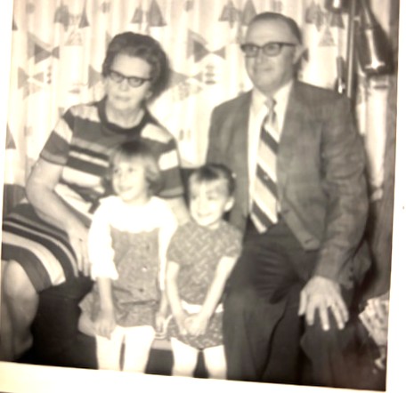 Isn’t it funny that even names mean old to us? Evelyn and Otto were my maternal grandparents. (Grama and Grampa “Shee-shee”) Living in North Dakota, memories of them are limited as we went there for two weeks every summer. My cousins and I were always a little scared of Grama. A former teacher, she made us toe the line. One particular summer stands out. After they sold the farm, they moved to town and we got to play with their neighbor kids. I have no idea what we were doing wrong; but I remember Grama storming out onto the porch wielding a paring knife and giving us the dickens. I was so embarrassed! I don’t think Grama realized she was waving the knife until the episode was all over and the neighbors had run for home, scared for their lives. When she wasn’t terrorizing the neighbor kids, she was busy playing piano or playing the organ in church. I also give her credit for letting us stay up late to watch Johnny Carson. Back when late night television was entertaining.