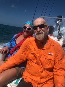 Scott’s 32 year old vacation shirt saw the light of day again this year; fitting better than it has in years. Next was a quick stop at Scott’s niece’s place in Cape Coral where she provided cookies and lemonade and another photo op. Our final destination; near Port Charlotte and Englewood. There we stayed with one couple and enjoyed wonderful hospitality as well. Each day we got together with other couples in the same area where we enjoyed the beautiful sunshine, warm pools, friendly card games and great company. We went for a pontoon ride for 14 in the Gulf where we saw more dolphins and I was able to do a little shell hunting. Four more days of total enjoyment with beloved friends.