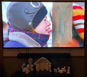 My cherished nativity – and a famous old movie on the television….name that movie. When I last wrote, I shared my feelings of despair as Day 100 came and went and Scott was not yet “cured”. In expressing our concerns at our last appointment, we were told that perhaps too much emphasis was placed on the first 100 days in the literature as in reality many, if not most, people take up to a full year to feel recovered. The first reaction is to be upset that this information wasn’t shared sooner, but ultimately; I don’t know that either of us could have handled that information earlier in the process. Some things are just better in smaller doses.